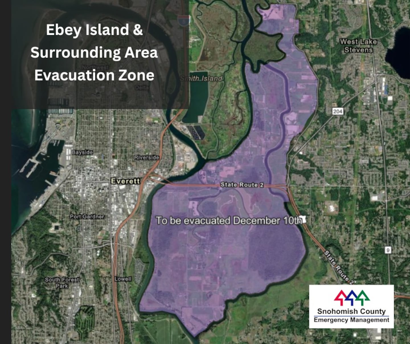 Ebey Island and Sunnyside Boulevard in Snohomish County are being asked to evacuate because of flooding.