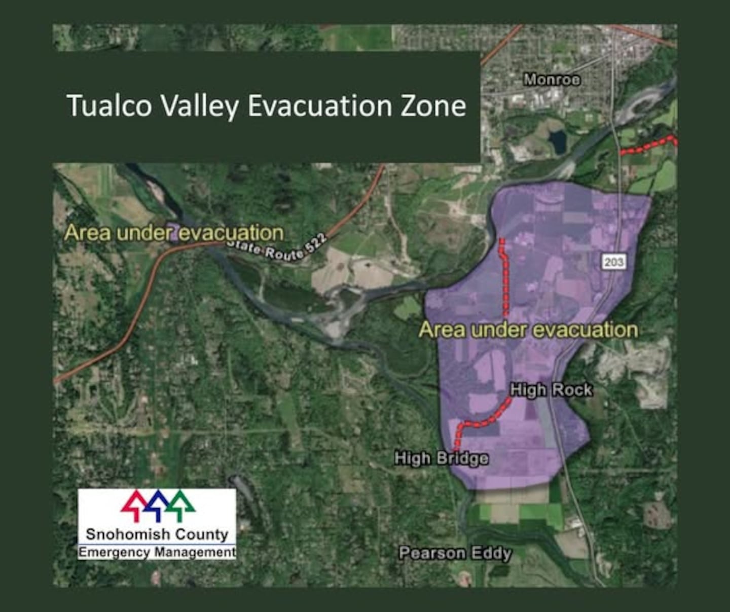 Everyone living in Tualco Valley, just south of the city, was ordered to evacuate by the Snohomish County Sheriff’s Office on Wednesday evening.