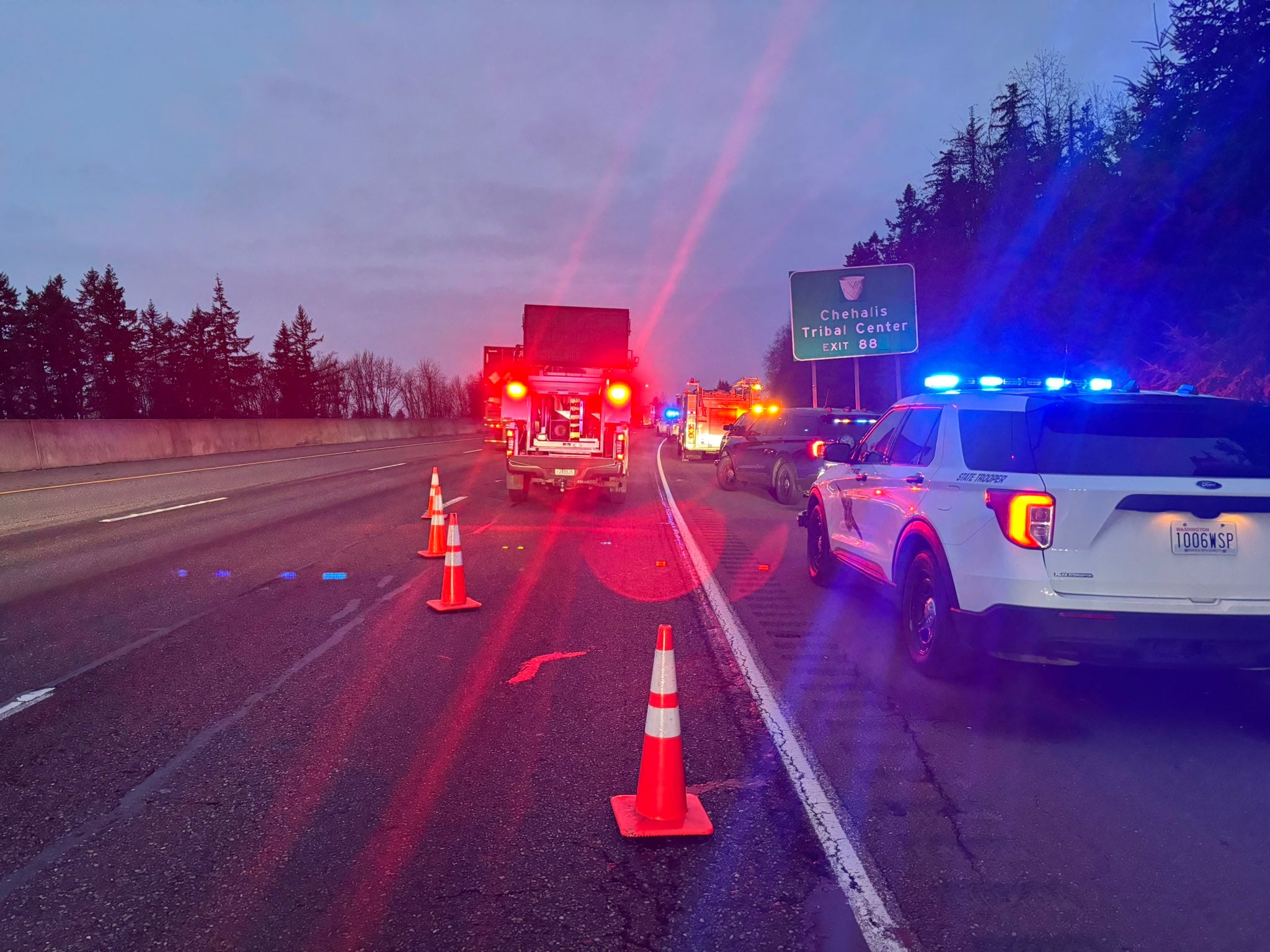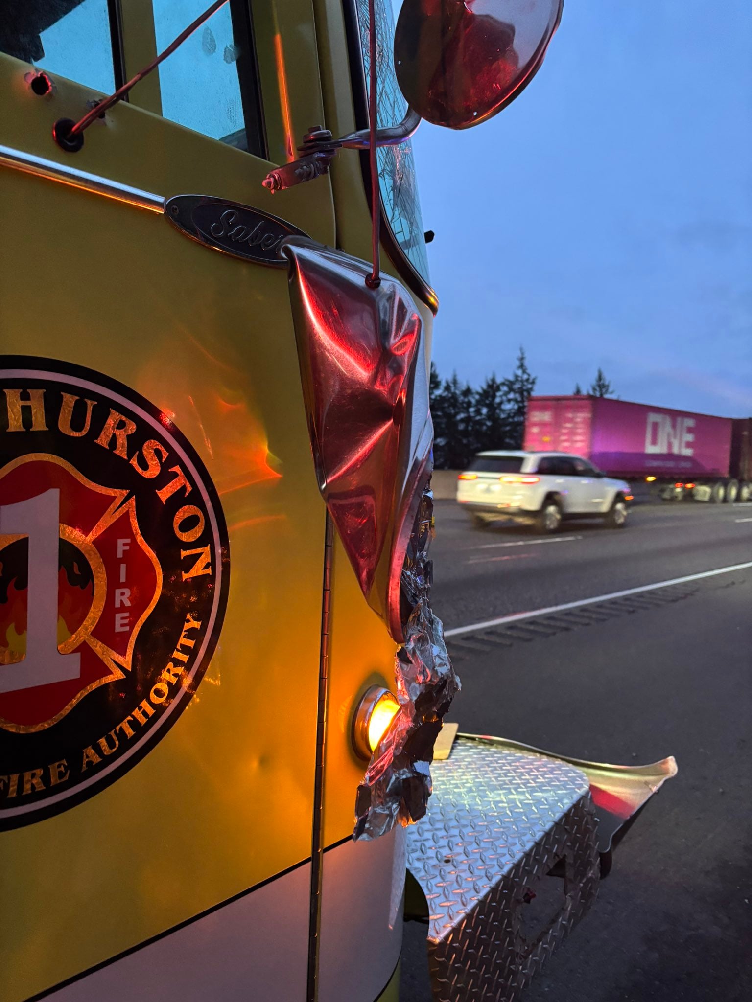 It has been verified that the vehicle involved in this collision only had a single occupant. All personnel on scene are safe with no reports of injuries from the fire engine-semi truck collision. Thanks to @wsdot_tacoma and @wspd5pio for their assistance on scene. pic.twitter.com/Var9xCemW5