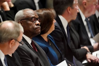 Dick Cheney funeral: Clarence Thomas, associate justice of the Supreme Court, second left, sits with fellow Supreme Court Justices during the funeral service of Dick Cheney. (Bloomberg/Bloomberg via Getty Images)