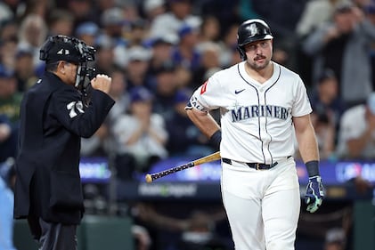 American League Championship Series - Toronto Blue Jay v Seattle Mariners - Game Four SEATTLE, WASHINGTON - OCTOBER 16: Cal Raleigh #29 of the Seattle Mariners looks on after striking out during the third inning against the Toronto Blue Jays in game four of the American League Championship Series at T-Mobile Park on October 16, 2025 in Seattle, Washington. (Photo by Steph Chambers/Getty Images) (Steph Chambers/Getty Images)