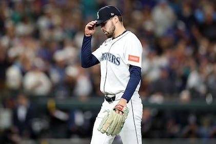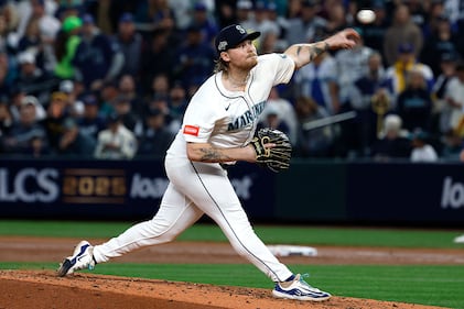 American League Championship Series - Toronto Blue Jay v Seattle Mariners - Game Four SEATTLE, WASHINGTON - OCTOBER 16: Matt Brash #47 of the Seattle Mariners looks on during the fifth inning against the Toronto Blue Jays in game four of the American League Championship Series at T-Mobile Park on October 16, 2025 in Seattle, Washington. (Photo by Steph Chambers/Getty Images) (Steph Chambers/Getty Images)