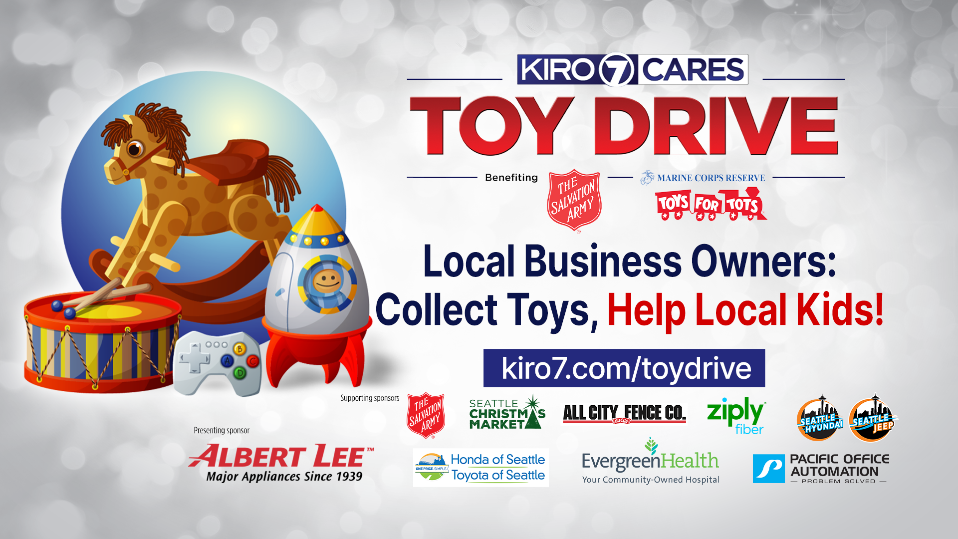 Every donation means a bigger impact that can help more families across Western Washington! This year, we need your help, because the need is greater than ever. If you are a local business owner, or manager, and would like to apply for your location to collect toys for the KIRO 7 Toy Drive, benefitting The Salvation Army and Toys for Tots, email us at: ToyDrive@kiro7.com.